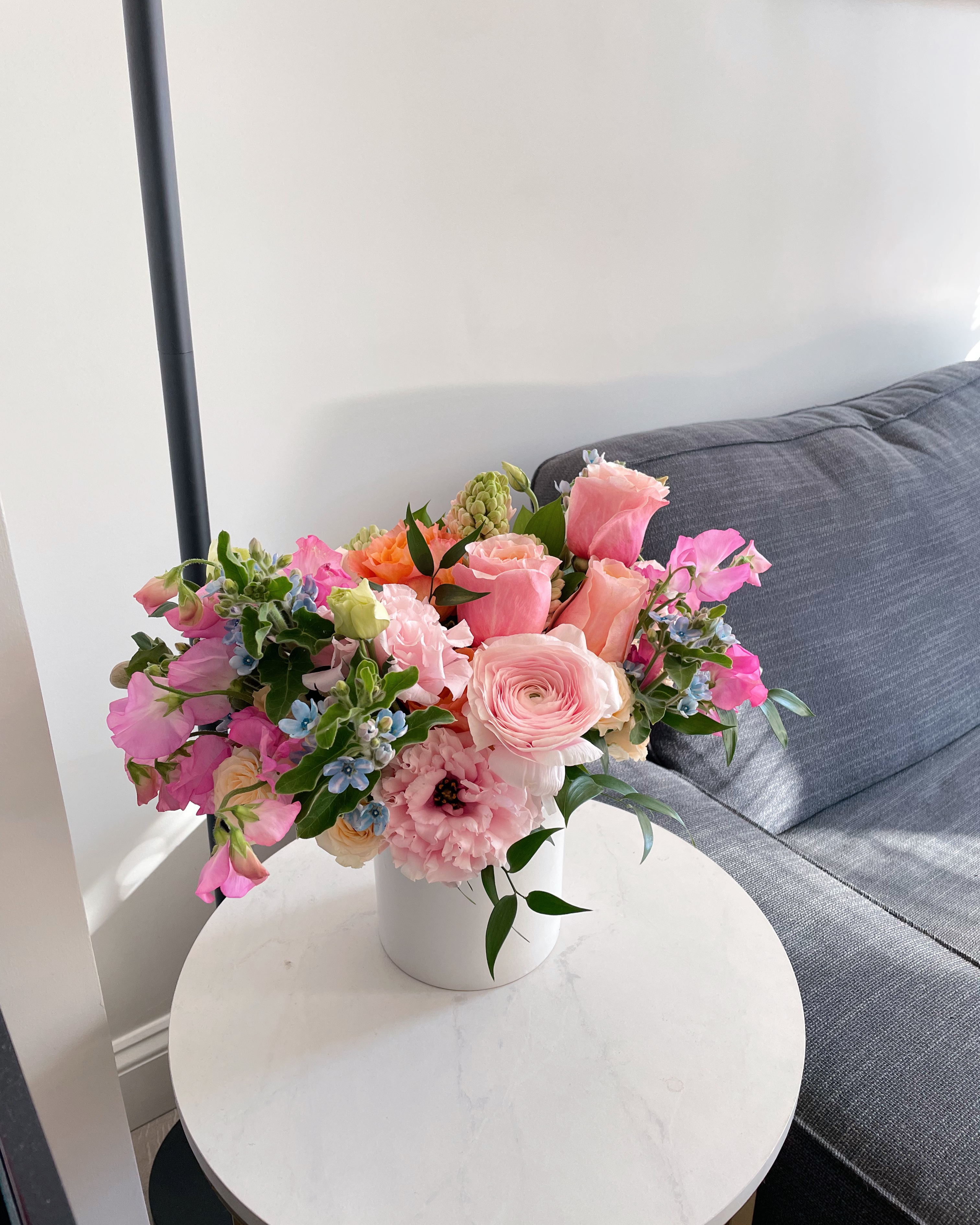 Send the gift of fresh blooms! Great for birthdays, anniversaries, or just because. Types of flowers used will vary based on the seasons.