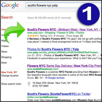 1. Google "Scott's Flowers NYC Yelp" and click on the first result! See, this is simple!!