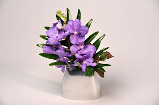 25. Pearl Street: A modern style of vanda orchids in a silver vase.