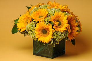 17. Battery Park: Mixed arrangement of sunflowers and green celosia coxcomb.